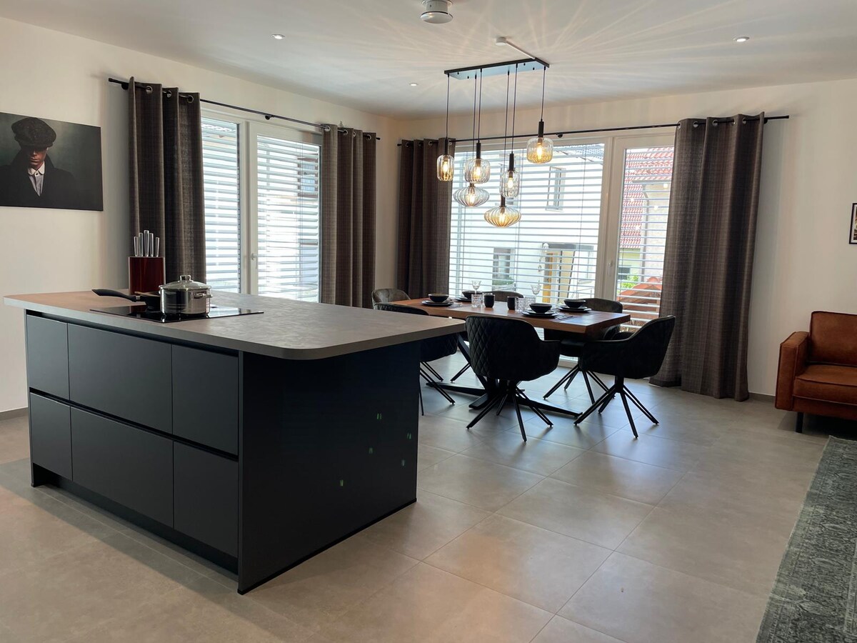 現代、陽光充足的公寓100平方公尺, 2位房客, 1間臥室、1間帶桑拿的浴室、1間客廳、廚房、陽臺、 免費停車位。最少預訂: 3天 我們很樂意在Wiesloch火車站搭乘火車接送旅客。 裝潢舒適的公寓位於我們兩戶住宅的二樓,有自己的入口,可欣賞Kraichgau山的廣闊景觀,以及位於死胡同中的安靜位置。 房子由太陽能和沼氣供暖。