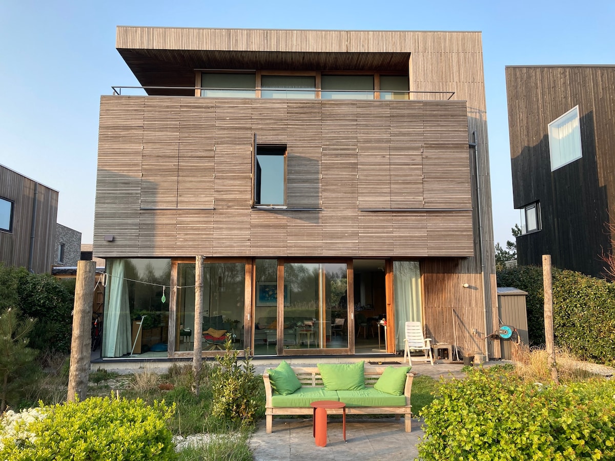 Our detached eco-villa is located on a little island in Amsterdam district called IJburg. The villa features a spacious living room with an open view and underfloor warming and cooling, keeping the house pleasantly warm in winter and cool during a heatwave. Sunny south-facing garden borders directly on the water. The tram to city centre is a 12-minute walk. Free private parking space on driveway for 1 car. We only rent to families (max 4 people). No parties, events or gatherings of any kind.