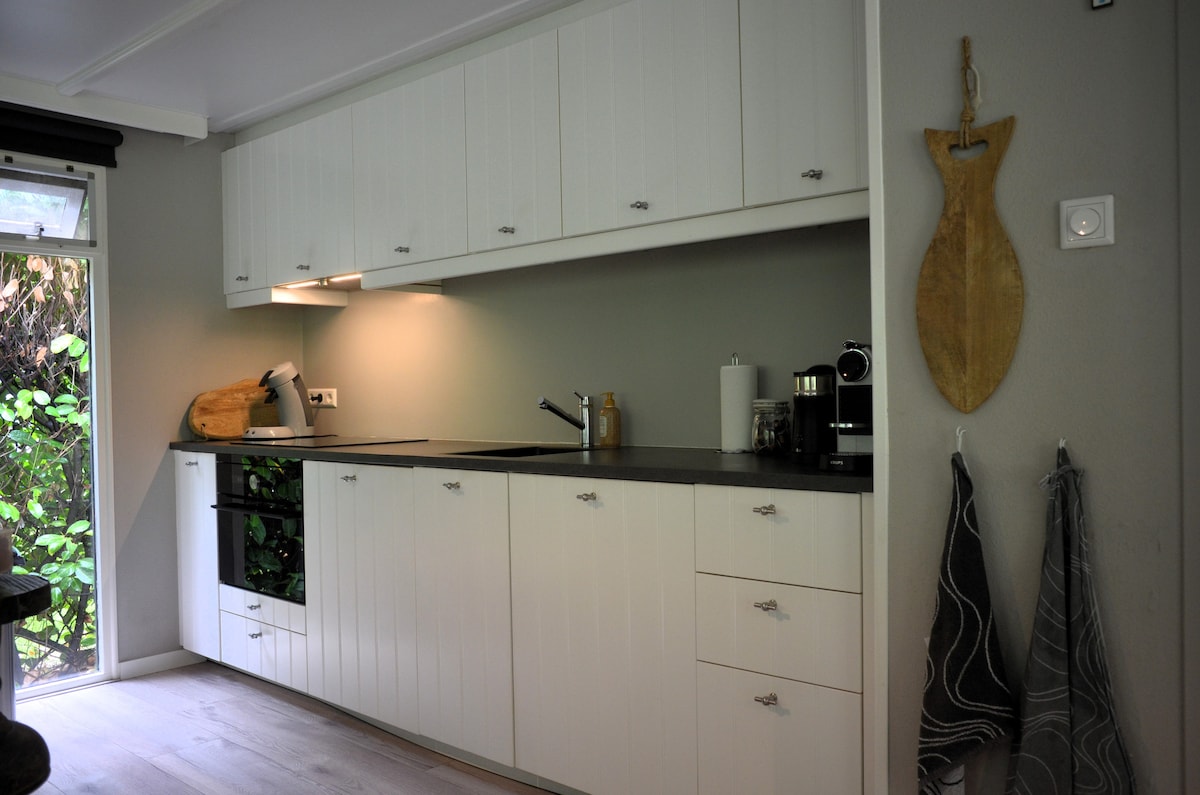 Voel je welkom! Dit ruime buitenhuis met eigen ingang is achter ons huis gelegen (aan de andere kant van onze rijke tuin). ♡ Woonkamer met gashaard, bioscoop, keuken met koelkast/ combi-oven/ waterkoker/ kookplaat, badkamer met o.a. regendouche, een vide met tweepersoonsbed ♡ Ruim terras met parasol, tuinmeubelen en een barbecue ♡ Sauna en hottub tegen bijbetaling (€45) ♡ 15 minuten lopen naar Haagse Markt (restaurants en winkels) 10 autominuten/ 15 minuten fietsen naar het centrum van Breda.