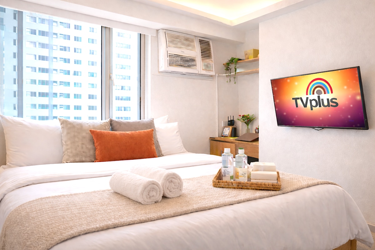 Kamusta! We're Jade and Sheryl, and we'd love to welcome you to our modern Acqua studio. It’s a peaceful spot directly across the Estrella–Pantaleon Bridge from Rockwell's chic cafes, restaurants, and Power Plant Mall. Relax on a queen bed, cook in a fully-equipped kitchen, stream on a 50” smart TV w/ Netflix & Prime, and work or play with fast 400 Mbps Wi-Fi. You’ll also enjoy access to Acqua's refreshing pools and gardens, rooftop gym, convenient shops, and peace of mind with 24/7 security.
