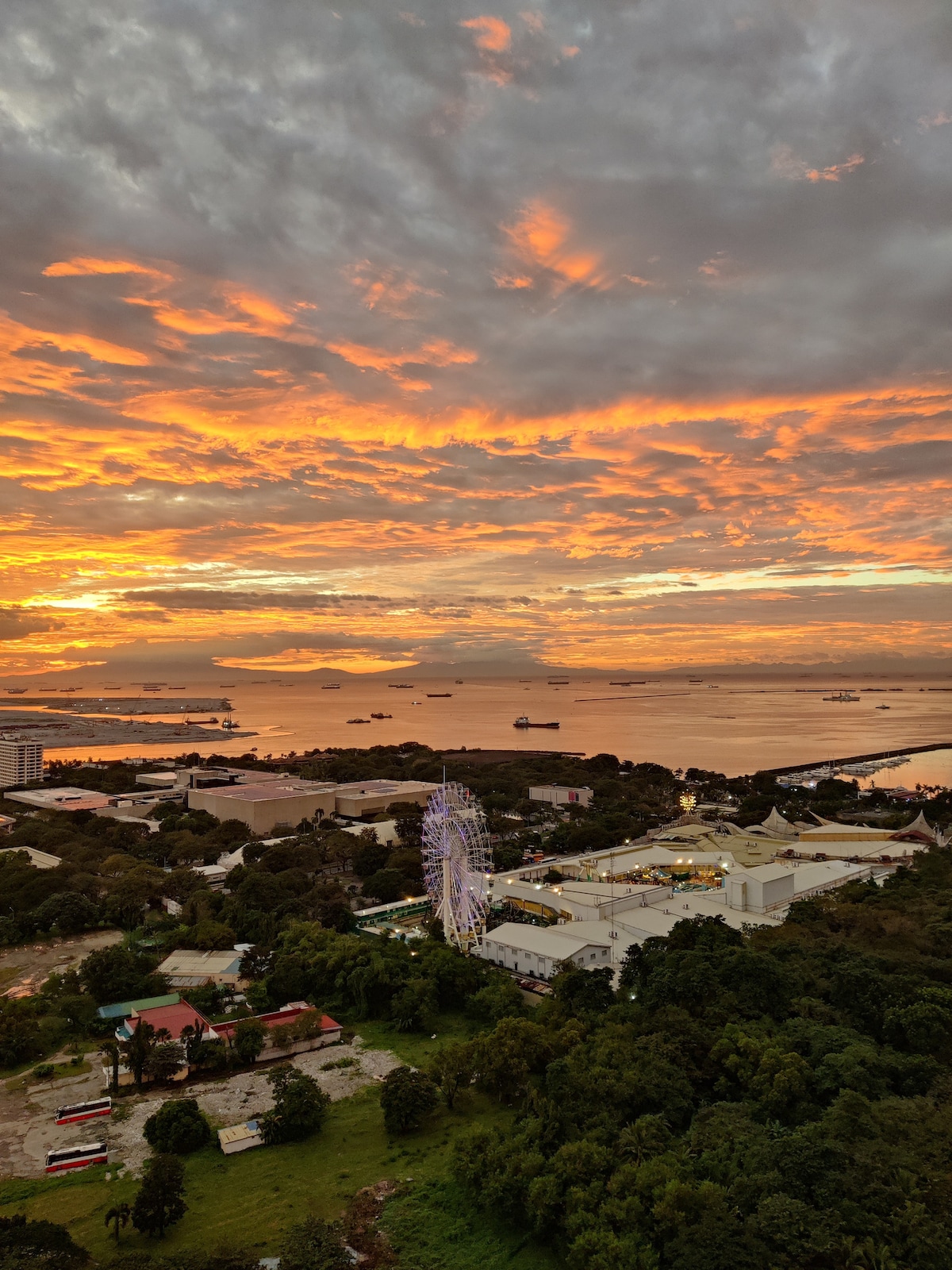 Cozy and homey place strategically situated at the heart of Roxas Boulevard--in front of US Embassy, walking distance to St. Luke’s Medical Center Extension Clinic, Robinsons Mall, and a quick drive away from NAIA. This spacious 1 bedroom unit is perfect for a getaway stop or a family staycation as it comes with a strong internet connection, 2 android TVs with access to a Netflix account, fully airconditioned living & bedroom. This space boasts of its sunset view and city lights at night.