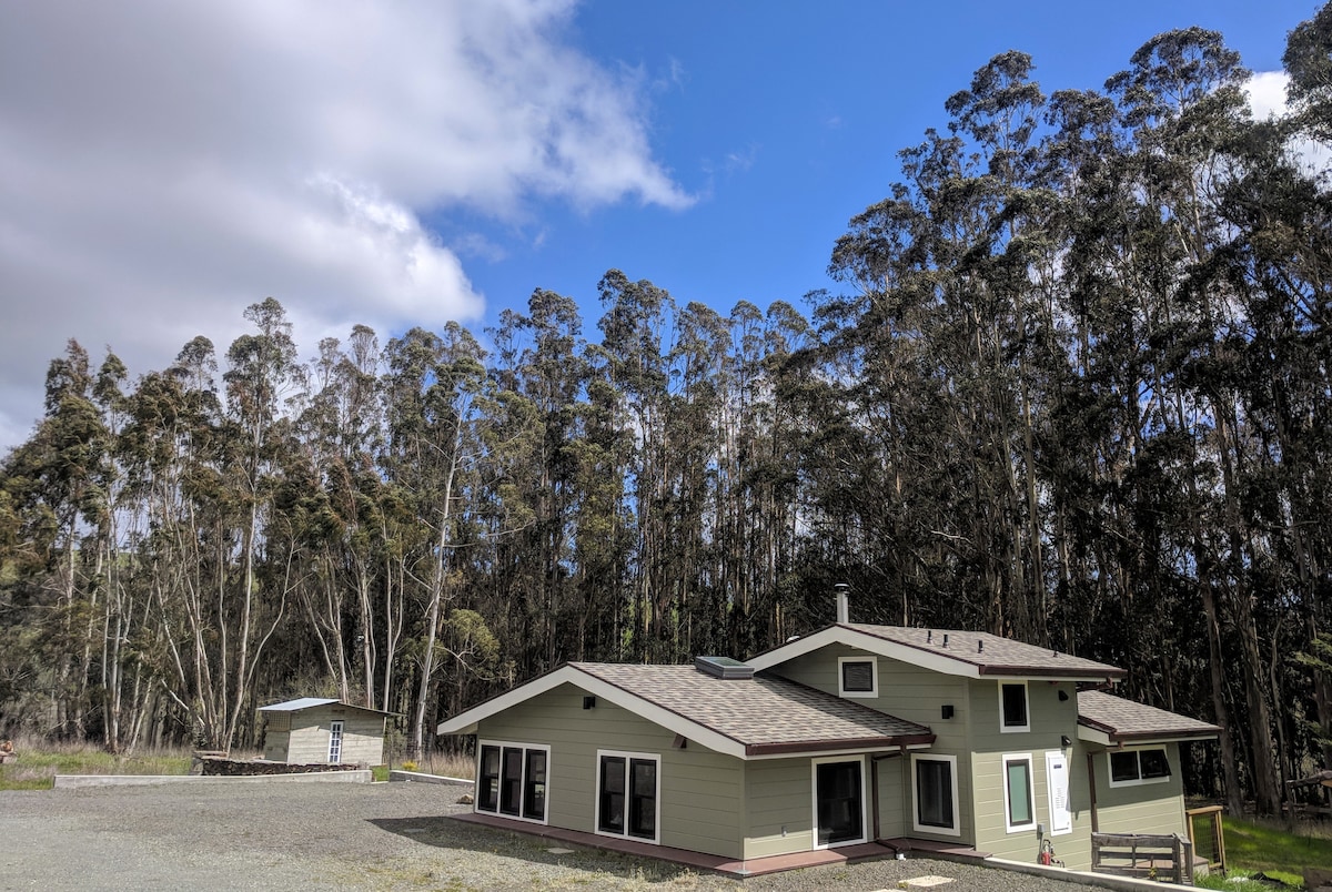 The Creekside Cottage in Point Reyes Station is a simple, modern craftsman with beautiful light all around. New construction, completed in 2017, it features serene quiet at night, bird viewing, and relaxing. Walk into town or head for the beaches from here. (It is not in Bolinas, online maps services are still confused about this fact)