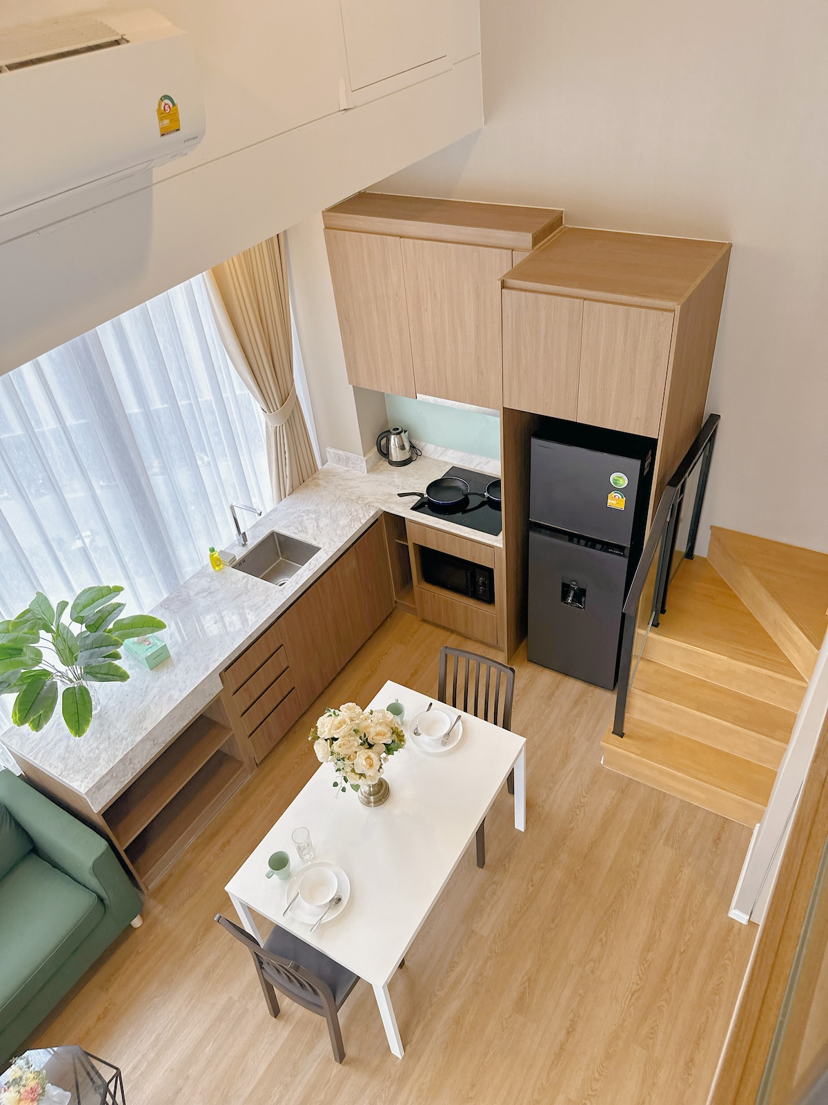 我的房子是2024年交付的Loft高级公寓,位于Rama 9-Ratchada市中心,欢迎来到您的另外一个家!这家时尚舒适的公寓式酒店位于充满活力的Cassia Rama 9的C栋 ,靠近RCA,家具齐全,客厅宽敞,复式阁楼和现代化厨房,配备了所有必需品,让您尽享家居舒适。全独立的两房一厅两卫Loft公寓,一层是客厅、厨房、洗手间、储物间, 一层的面积是46平方米,二楼是卧室、衣帽间、卫生间,二层面积是20平方米。