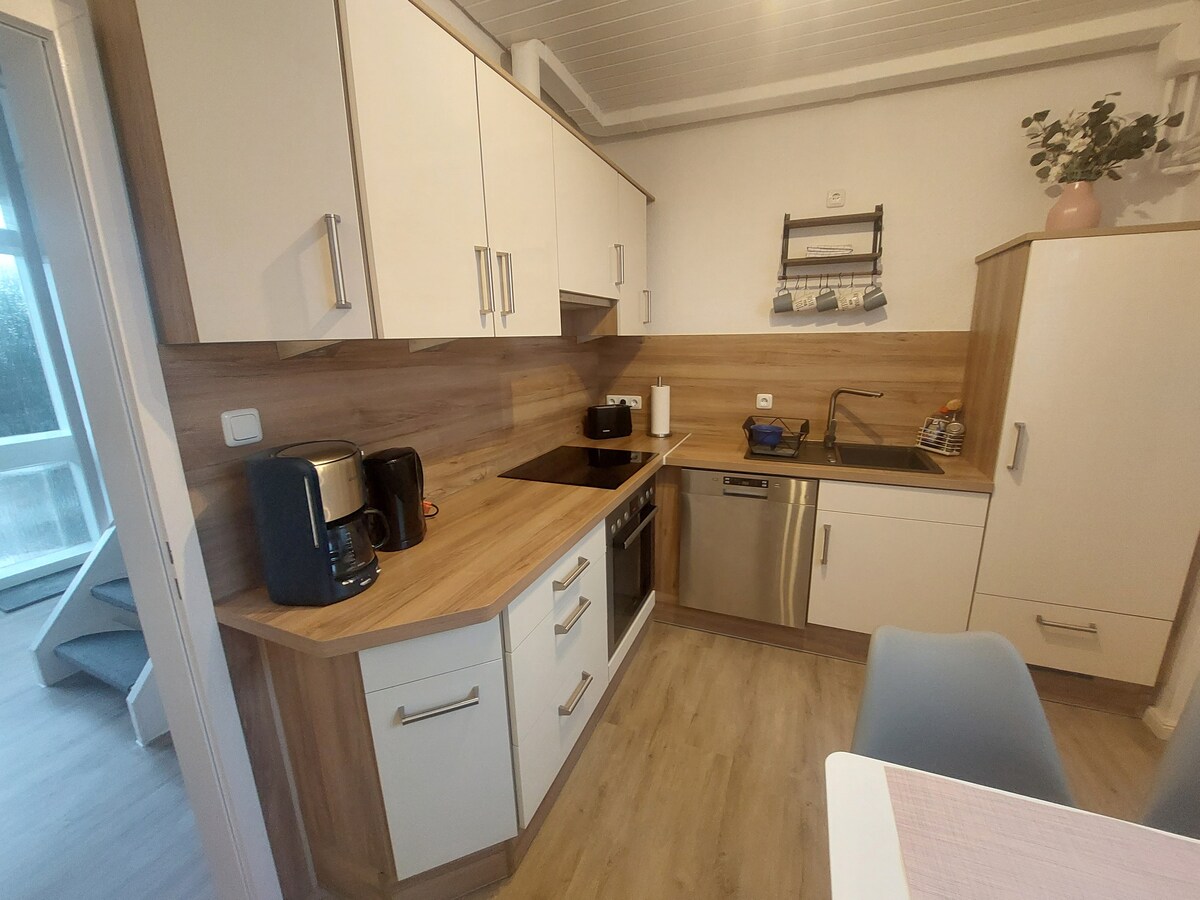 我們的「小屋」充滿了愛,就像我們為自己佈置度假屋一樣。它位於村莊中,但很安靜,可以看到馬和牛。您有自己的花園,可以自己使用。 外牆尚未完全完成,因為溫度趕上了我們,但房子內一切都已準備就緒,可以讓您度過一個放鬆的假期。 我們期待您的到來 Nadja 和 Olaf