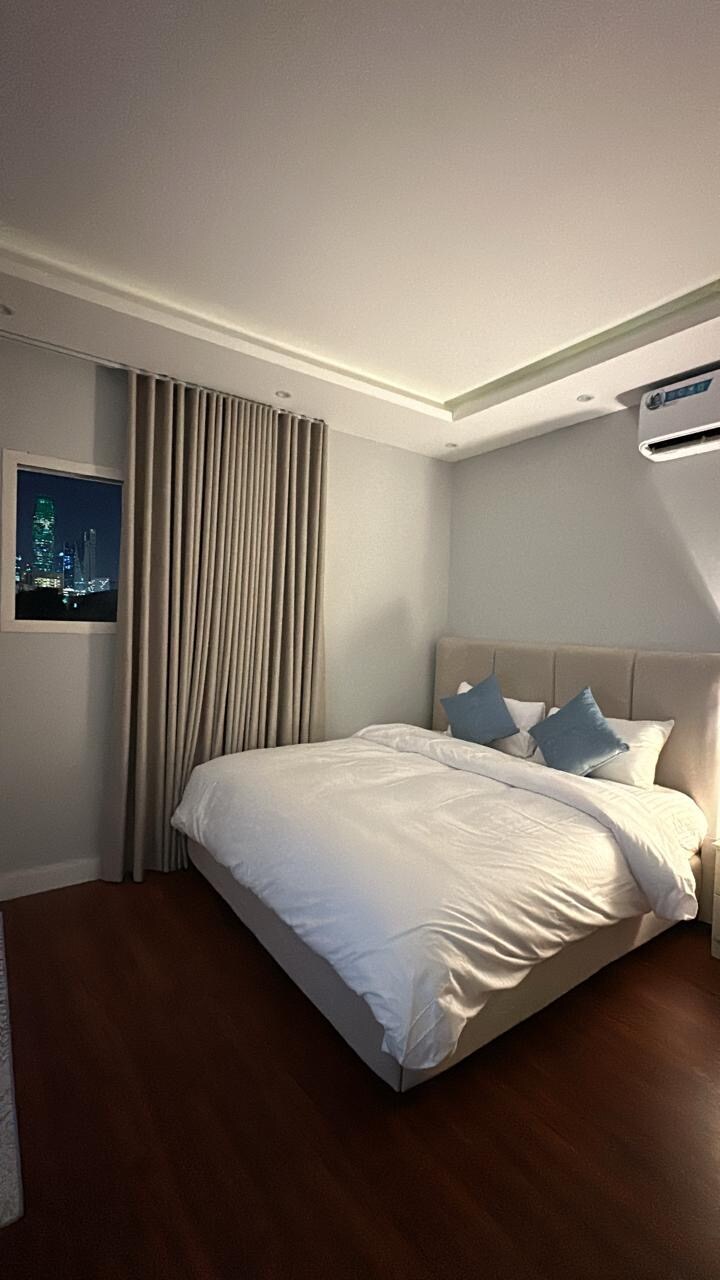歡迎來到我們的公寓,為您提供超出期望的卓越住宿體驗。公寓內有一間配備最優質床墊的臥室,以及一個獨立的客廳,配有舒適的沙發和 65 吋智能螢幕(Netflix、Shahed、Bn)+ Wi-Fi。廚房配備齊全,可滿足您的所有需求。戶外座位區採用鄉村設計,可欣賞金融中心的獨特景觀,適合與家人和朋友舉辦活動和聚會。公寓配備了短期和長期住宿。地理位置優越,位於市中心,靠近景點、服務和餐廳。