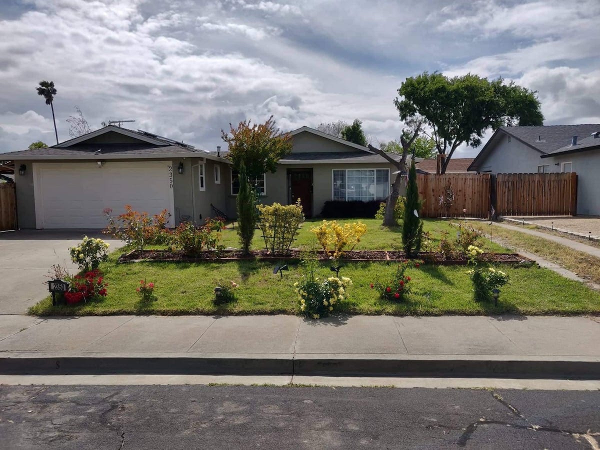 這棟房子在經過長時間改造後才發佈,前院和後院通道很大,院子裡有玫瑰和果樹。 全新改造,家具,油漆,巴西櫻桃地板。 距離LLNL和DT 4英裏。 *清潔服務 *鑰匙鎖門鎖 *每個房間都有WIFI電視 *兩間設備齊全的臥室-大牀或卡利特大牀 *配有浴缸和兩個水槽 的浴室*客廳裡有兩張沙發牀 *外面有監控 攝影機*免費停車位 *全功能廚房 *洗衣機烘乾機 *洗碗機
