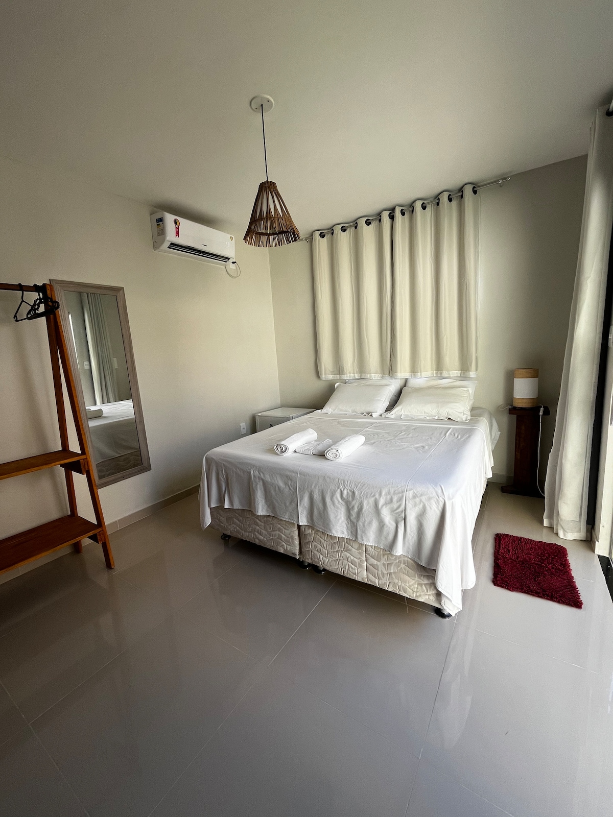 Bangalô independente, cama de casal queen size, ou 02 camas de solteiro, ar condicionado, banheiro moderno, TV Smart com Netflix disponível, WI-FI fibra ótica, pequena cozinha totalmente equipada, varanda com rede, 30 MT das lojinhas e 50 MT da Praia do Mucugê. Cottage, independent, Queen Size or Double Singue Bed, Air conditioned, Modern Bathroom Smart TV, WI-FI Fiber Optic, Small Kitchen, Hammock veranda, 30 meters from the center of Arraial and 50 meters from Mucugê Beach