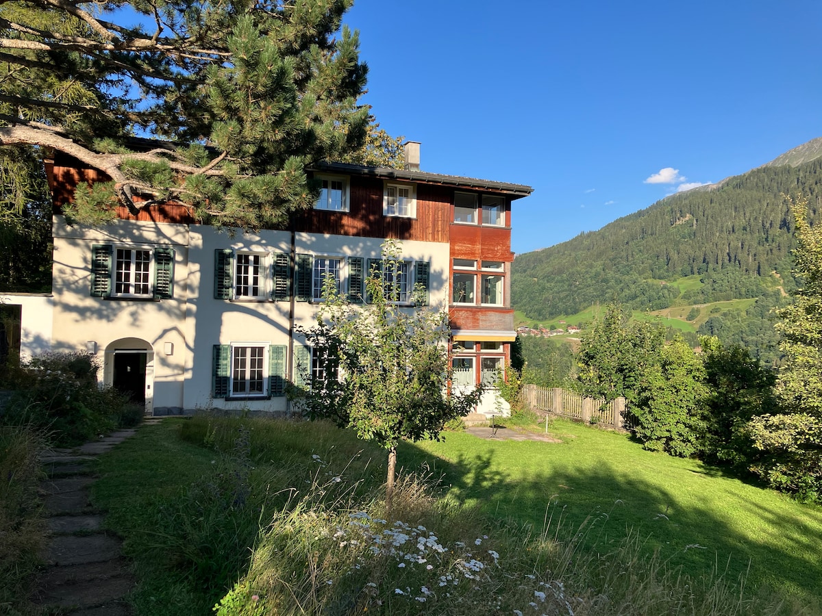 歡迎來到約150年歷史的Maissen別墅,這是一座美麗的莊園,擁有精心維護的花園和山景,非常適合設計愛好者和自然愛好者。一樓的度假公寓是您放鬆或運動的好地方。 附近有四個滑雪區: - Brigels 和 Obersaxen (各 10 分鐘) - 迪森蒂斯/塞德倫 (Disentis/Sedrun) (20 分鐘) - 弗利姆斯/拉克斯 (Flims/Laax) (25 分鐘) 格勞賓登高地 (Bündner Oberland) 提供許多戶外活動,以及瓦爾斯 (Vals) 的溫泉,適合健康愛好者。