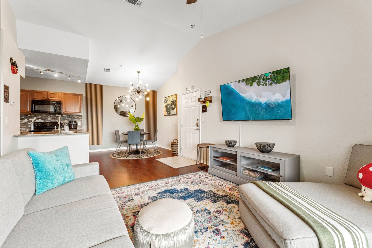 在 Storey Lake 度假村享受無憂無慮的假期。距離迪士尼、Falcon's Fire 高爾夫俱樂部、環球影城、環球影城樂園、海洋世界、橘郡會議中心、高級購物中心僅幾分鐘路程。距離沃爾瑪、Target 和餐廳不到 1 英里,您的家人將擁有所需的一切。水上公園、健身房和所有免費設施。免費停車位、24 小時全天候保安、自動入住、直接存取密碼和電梯