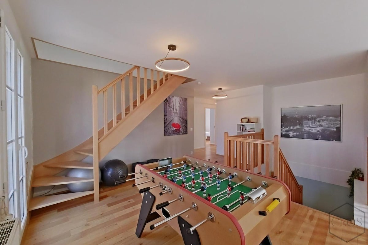 有4間臥室,最多可容納11位成人。 臥室 1:加大雙人床 180x200 臥室2 :標準雙人牀160x200 +牀90x190 臥室 3:2 張床 90x200 臥室 4:2 張床 90x200 2人沙發牀 浴室:大淋浴間和按摩浴缸 設備齊全的廚房 高速WiFi 2 個停車位 開車(或巴士) 20分鐘即可抵達迪士尼樂園,乘火車25分鐘即可抵達巴黎。 步行即可抵達火車站、麵包店和商店