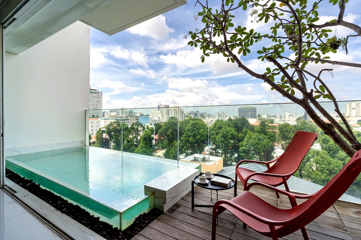 Experience a stay in the heart of Saigon where luxury, privacy, comfort & convenience meet. Our spacious duplex apartment features a private pool on deck, high-end finishes, access to top-tier amenities such as an infinity rooftop pool, gym and sauna. Perfectly located next to the Japanese Embassy, our guests enjoy easy access to iconic landmarks Ben Thanh Market - 8 min drive War Remnants Museum - 4 min drive Notre Dame Cathedral - 7 min drive Book For Lasting Memories — See Details Below