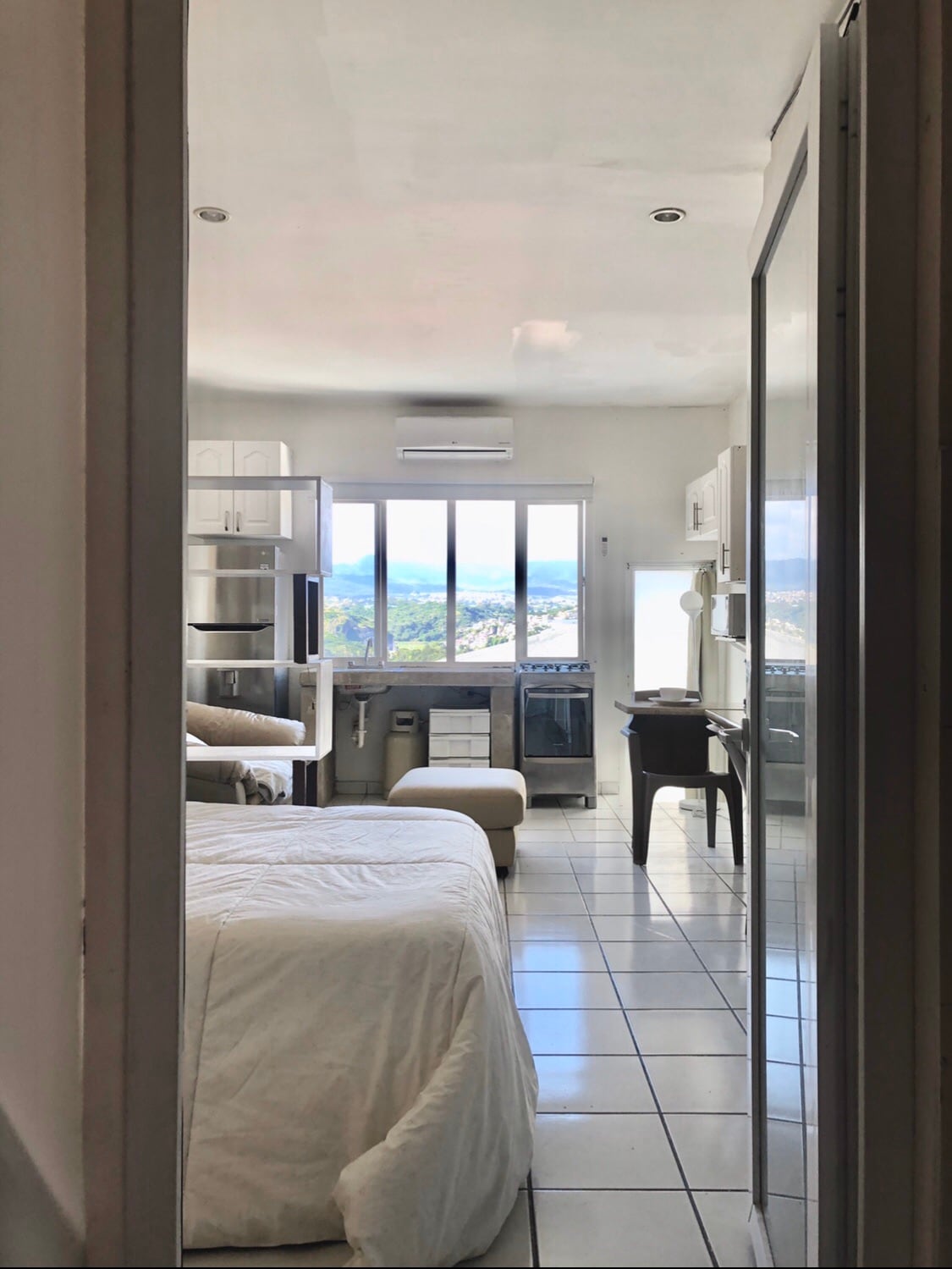 單人房公寓,配備全套浴室、小廚房、冰箱和廚房所需的一切,位於安全的街區殖民地。 包括WiFi和有線電視 靠近Mall Multiplaza、Hotel Intercontinental和Pricesmart。