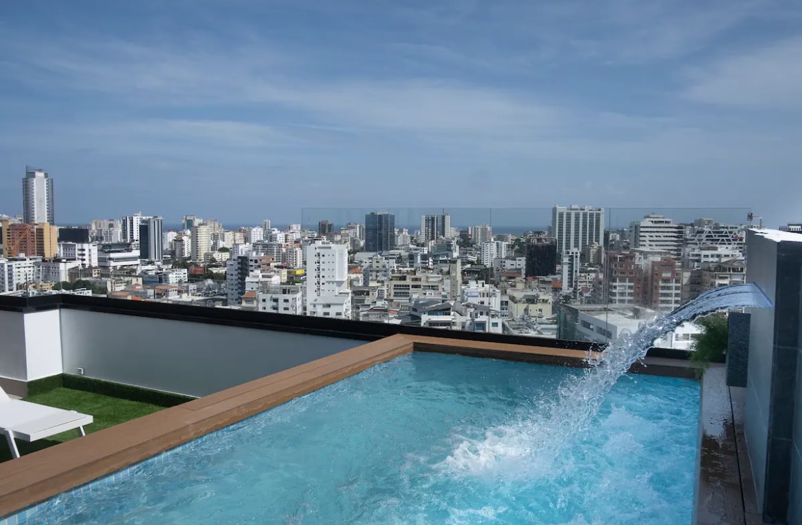 這間位於聖多明各最安全、最溫馨的街區之一的中心住宿,享受奢華體驗,附近有很多酒吧、餐廳、商場、超市、藥店,距離這裡只有幾公尺遠。 設備齊全的公寓,位於一棟現代化建築內,位於10樓,您可以在那裡欣賞壯麗的景色。 令人驚嘆的公共區域,在12樓,無邊際泳池,健身房,電影院,燒烤 24小時保全和自己的車庫空間
