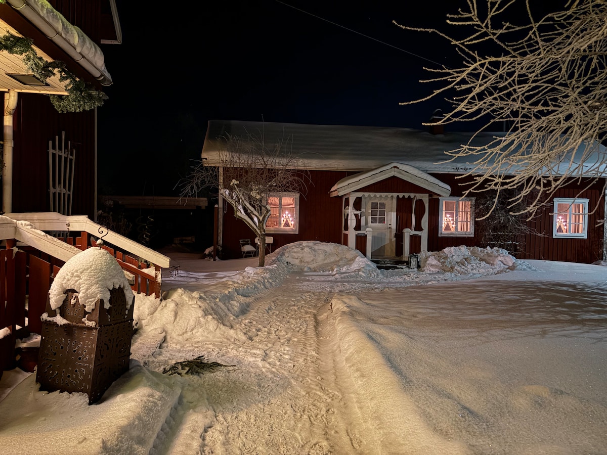 大房子的院子裡的小屋。小屋已經全面翻新。僅供出租。 私人露台和停車位。 電動車充電器。請自備充電線。 整個農場位於美麗的山谷村莊Djura的盡頭,完全不受外界干擾。距離美麗的游泳湖3公里。距離Leksand 15公里,在Siljan有各種滑雪道和溜冰道。 距離Granberget 滑雪場 30 公里。該地區有各種景點和旅遊景點。開車7分鐘即可抵達車站,步行3分鐘即可抵達巴士站。