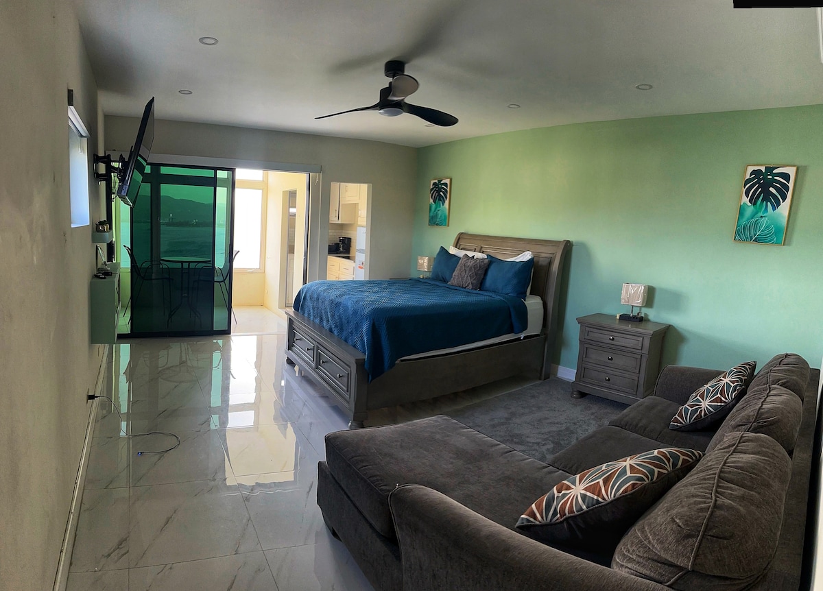 我們已準備好迎接您! Wah Gwan ! (「怎麼回事?」 ) 來住在MoBay中心的舒適公寓—位置、位置、位置! 這間安靜的3樓海景單間公寓最多可容納4位房客,並設有迷你獨立睡眠區。 配備全尺寸冰箱、攪拌機、微波爐、瓦斯爐、洗衣機和烘乾機。 在泳池旁放鬆身心,欣賞全景海景和山景,在泳池酒吧享用飲料或餐點,並在現場迷你超市購買必需品。 你一定會喜歡這次住宿❤️🇯🇲
