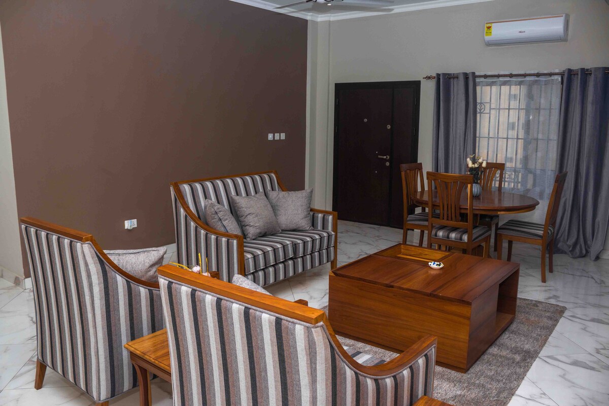 豪華新建寬敞的雙臥室套房公寓,適合長期短期住宿。 房子位於North legon的黃金地區。 公寓距離科託卡國際機場9.5公裏,距離迦納大學、大西洋購物中心、宮殿購物中心、Legon植物園1.5公裏,公寓靠近任何地方。 套房配有加大雙人牀和主人尺寸的矯形牀墊,讓您睡個好覺。 智慧公寓配有監控攝影機,非常適合舒適和安全生活。