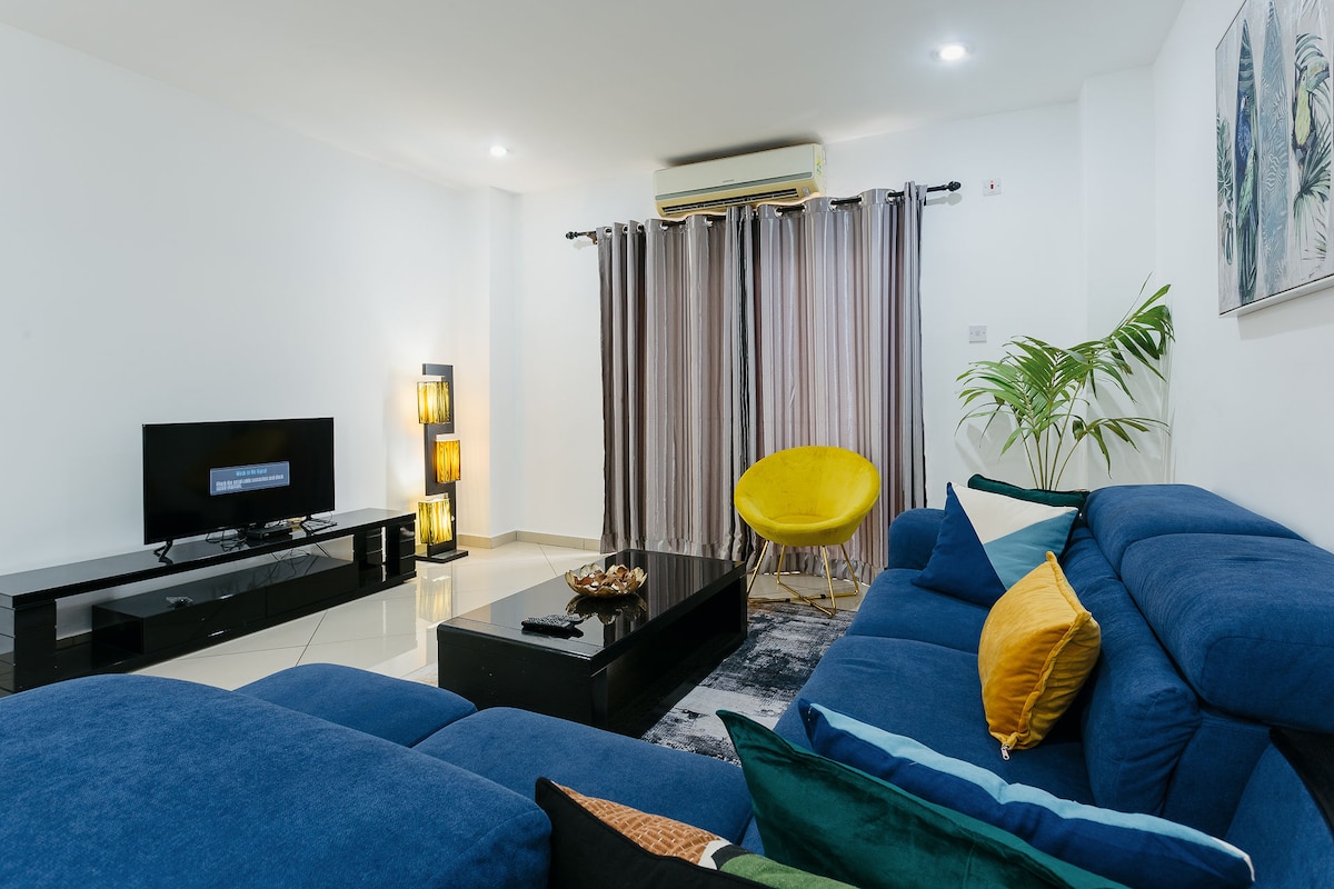 在這間美麗奢華的2臥室公寓中,與全家人一起放鬆身心,這間公寓位於設有24小時保全的社區。 房源地理位置優越,距離科托卡國際機場僅30分鐘路程,距離Achimota Mall、Melcolm Shopping Mall和Palace Shopping Mall僅短短車程。 這間公寓專為舒適而設計舒適,將成為家一般舒適的家