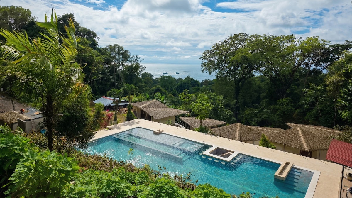 探索Villa del Cielo ,這是Pura Villas豪華系列的一部分。 這棟全新的生態豪華別墅可欣賞迷人的海景、無邊泳池和放鬆的按摩浴缸。 位於Uvita和Dominical之間,距離Playa Hermosa僅5分鐘路程,距離Uvita市中心僅幾分鐘路程。 Villa del Cielo專為家庭和團體設計,融合了現代舒適和自然美景,讓您在哥斯大黎加南太平洋享受寧靜的度假體驗。