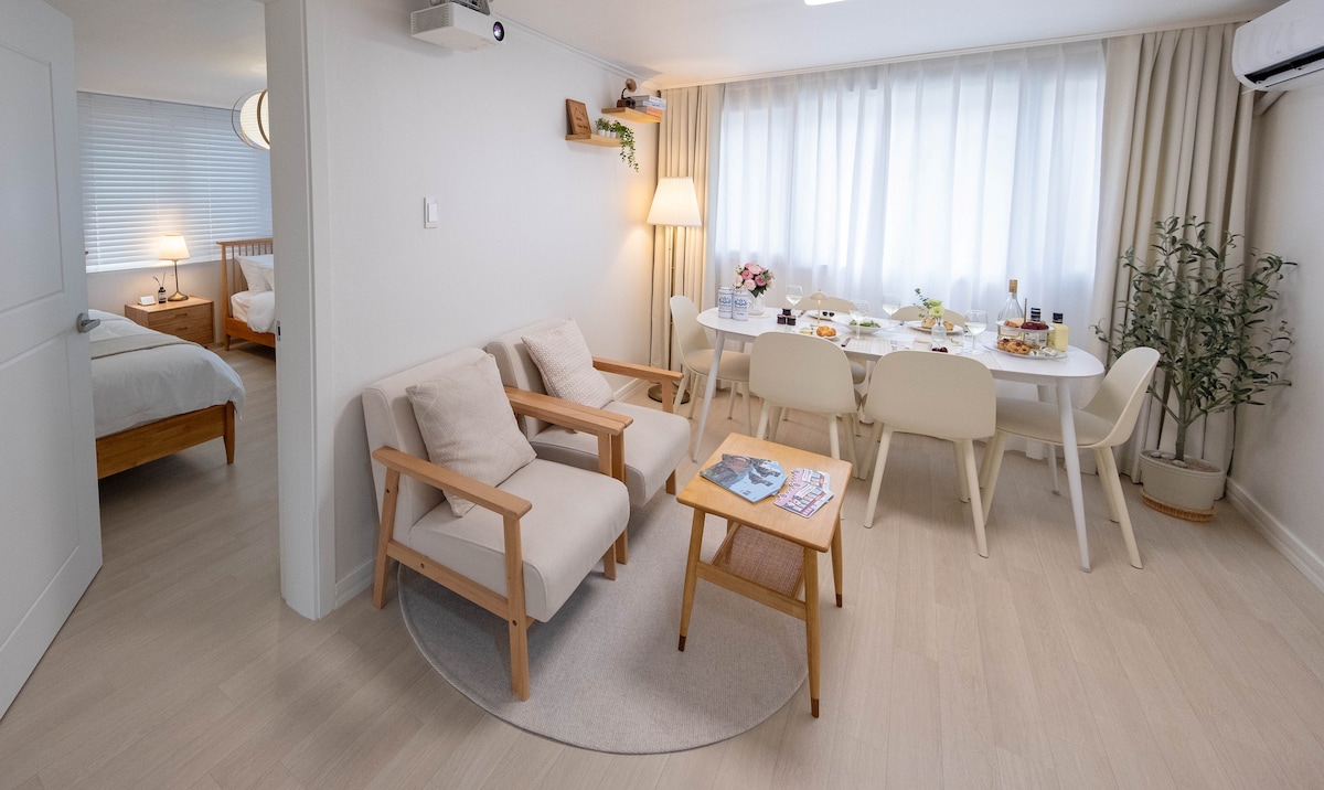 距離弘益大學站 3 分鐘/溫馨舒適的住宿/2 間房間 3 張床/免費超高速 Wi-Fi/Jun House 1