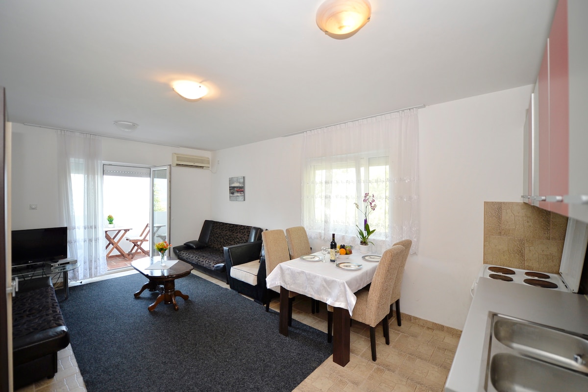 公寓距離舊城區Kotor 4公裏。我們就在主幹道旁邊。 飯店「Forza Mare 5 *」旁邊。 公寓有自己的入口。它有50平方公尺,有一間臥室、客廳、廚房,配有所有廚房設備(烤麵包機、冰箱、廚具、炊具... )浴室(配有機器、毛巾、吹風機.. )和20平方公尺的露臺,配有家具。