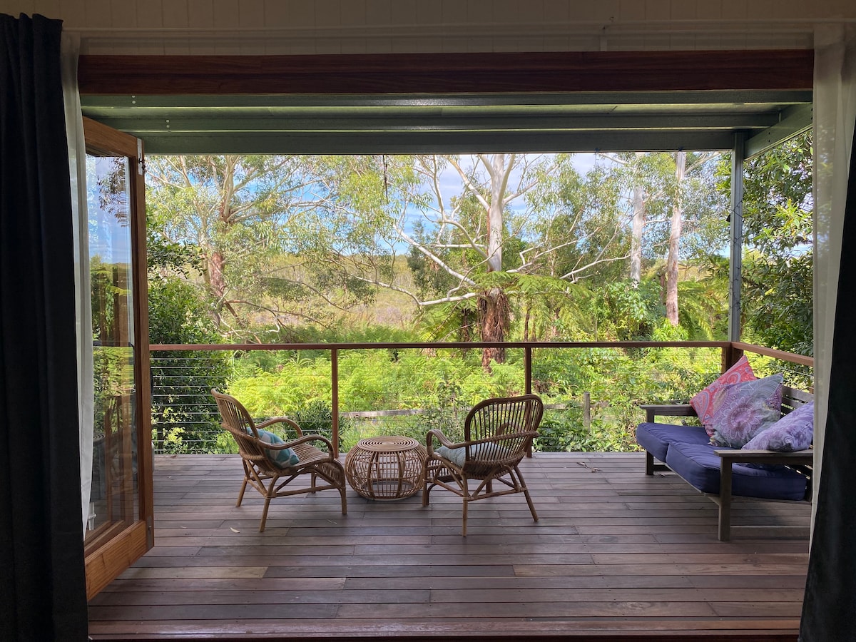 在努薩內陸尋找獨特的私人度假勝地。獨立式明亮通風的小木屋,位於僻靜的森林花園。 豐富的鳥類和小袋鼠。 裝飾精美,充滿藝術感,有沿海的感覺。 非常舒適的床,白色床單。最近翻新的獨立小廚房、淋浴間、堆肥馬桶、燒烤。 很好的電話接待、網路。友善的房東。靠近Eumundi、Noosa、Peregian、Coolum ,輕鬆前往所有陽光海岸。純粹的不複雜的奢華。