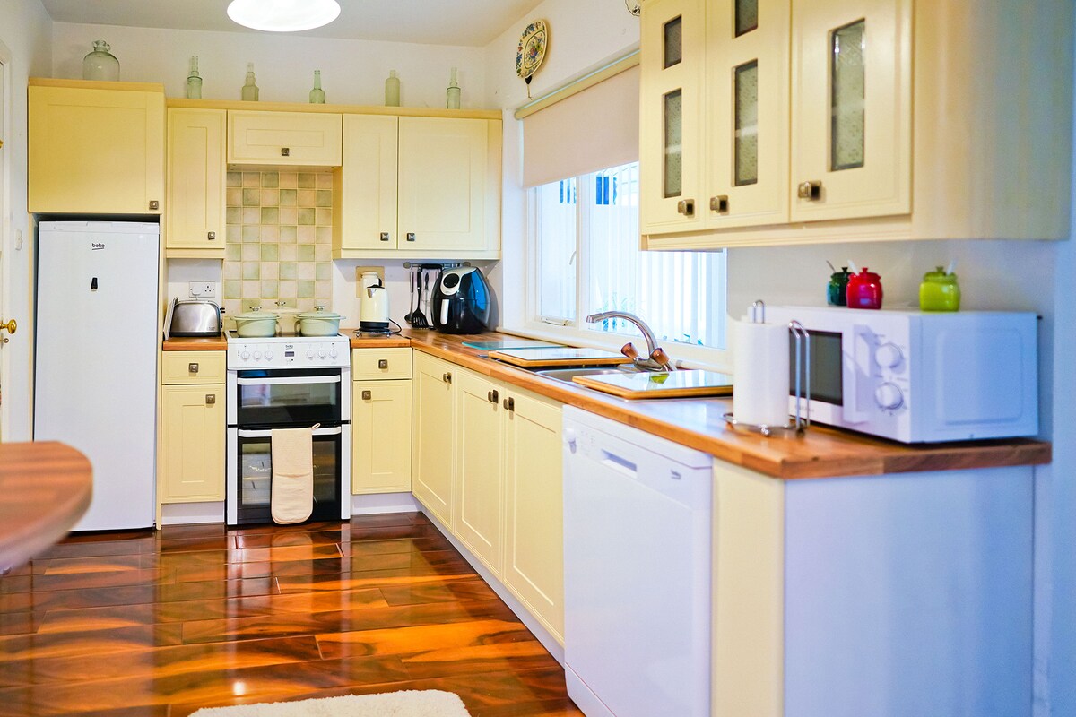 請注意,此平台上無法提供萊德盃賽事住宿 非常適合探索克里、科克、克萊爾、利默里克和高威。 我們的客用住房包括3間雙人臥室和2間浴室、寬敞的起居室/用餐區域、設備精良的廚房、私人花園,步行12分鐘即可抵達市中心。 我們在主屋後面的獨立公寓內,可以提供協助,但只有在要求的情況下才會提供協助,您的隱私是我們的首要任務。 兩全其美!