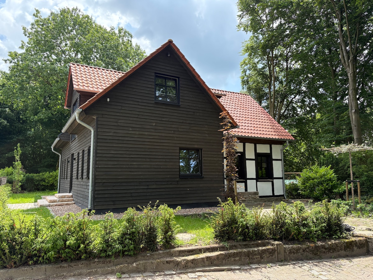 古樸的半木屋位於森林中。2020年,這間小屋全新擴展:現代化、高品質,充滿光線。 放鬆由新的桶式桑拿房和花園中的熱水浴缸( gg.附加費)。透過大型上層大窗戶,您可以看到鄰近的高爾夫球場-或享受原始大自然。 僻靜的房源為最多8人提供放鬆時刻的最佳條件。[10歲以下的兒童免費入住/與同行者預訂時。]