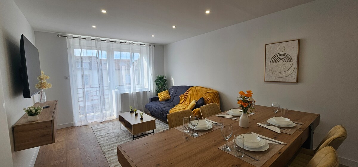 歡迎入住這間位於梅斯 (Metz) 的美麗安靜公寓,步行即可抵達:3 分鐘到競技場 (Arènes)、5 分鐘到蓬皮杜中心 (Centre Pompidou)、10 分鐘到火車站和 15 分鐘到市中心。這間70平方公尺的公寓位於塞耶公園(Parc de la Seille)旁邊,適合晨間散步,由一間大客廳、一間現代廚房、一間大臥室(+可應要求提供折疊式嬰兒床)、一間帶浴缸的浴室、一個被綠意環繞的舒適陽臺、一個獨立廁所以及一個一樓停車位組成。