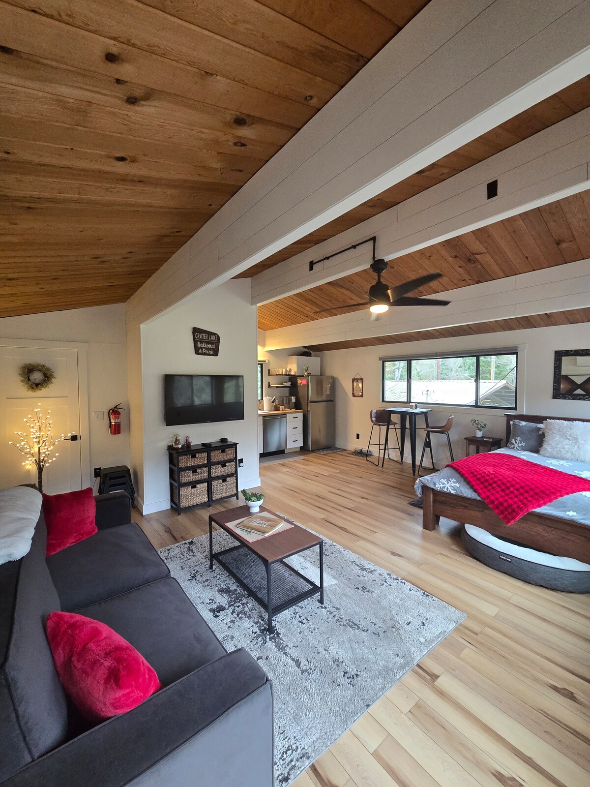 想打造「畢生難忘的回憶」嗎? 歡迎來到Treetop Lodge,這是一個翻新的兩層A字型房屋,佔地14英畝。 坐落在湖畔的山丘上,感覺很僻靜,但距離城鎮只有幾分鐘的路程。 在私人森林步道上徒步,終點是湖泊;在星空下泡在按摩浴池中;在火坑旁烤棉花糖;或在舒適的閣樓上蜷縮,享受終極電影之夜。 無論你是追求冒險或尋求平靜,都能打造屬於自己的體驗。