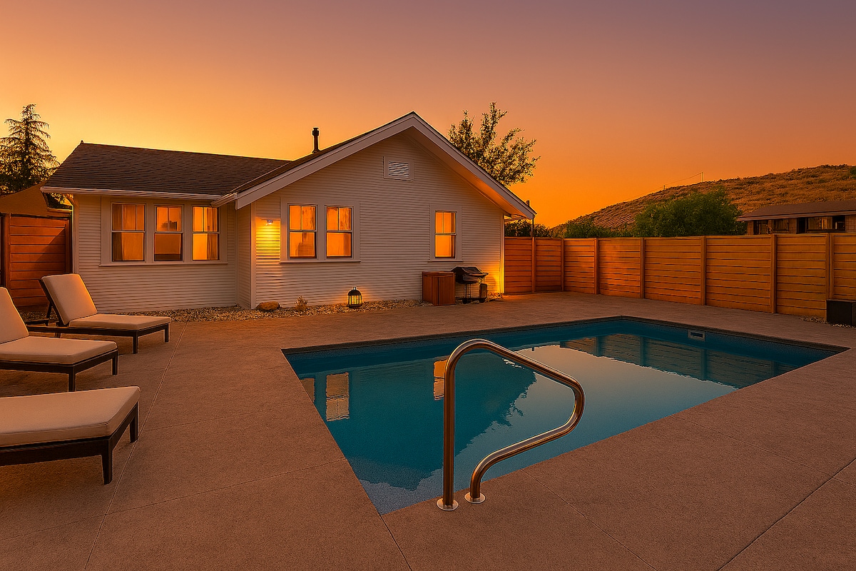 Welcome to your home away from home near Soap Lake. Nestled within the picturesque Lakeview Golf Course, this exquisite 5-bedroom, 2-bath home offers an unforgettable retreat for families and groups seeking relaxation and outdoor adventure. Spacious, inviting and beautifully designed modern interior. Open interior, large windows with breathtaking views of the golf course, large doors to oversized deck and heated 16 x 32 pool w/ sun shelf in shallow end. Hot tub on patio.