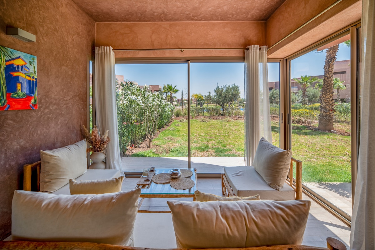 Jana別墅距離馬拉喀什市中心僅10分鐘路程,坐落在俯瞰阿特拉斯( Atlas )的私人安全高爾夫住宅「Argan高爾夫度假村」。 此房源可欣賞高爾夫球場的壯麗景色,您可以充分享受主人及其俯瞰高爾夫球場的浴室。 其整潔的裝飾使其成為家庭聚會的理想選擇,並在優雅的環境中享受輕鬆或運動的假期。