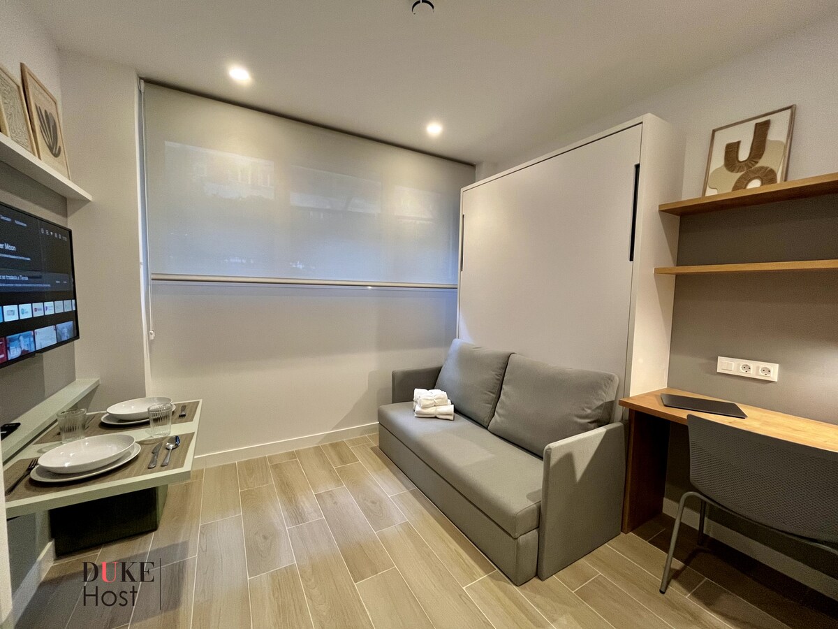 你想住在馬德里市中心的皇宮旁邊嗎? 這間舒適的獨立單間公寓位於安全優雅的街區,周圍有公園,提供熱帶主題空間、水療風格的浴室和小廚房。 享受冷氣、Wi-Fi和智慧電視。 非常適合旅客、情侶或商務差旅人士。 非常適合步行探索馬德里或輕鬆出入。 我們很樂意歡迎您!