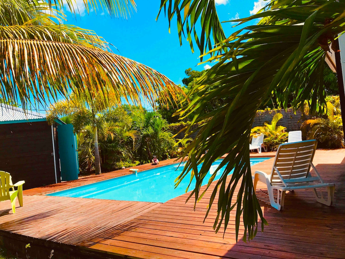 Nous vous accueillons dans un cadre convivial et plein de charme. Le complexe est composé de 3 bungalows implantés au coeur d'un jardin tropical tout autour d'un magnifique lagon artificiel... Idéalement situé à 5 minutes du spot de surf du Helleux, à 5 minutes du spot de kite de Bois Jolan, à 10 minutes des plus belles plages de Sainte Anne ou de Saint François.