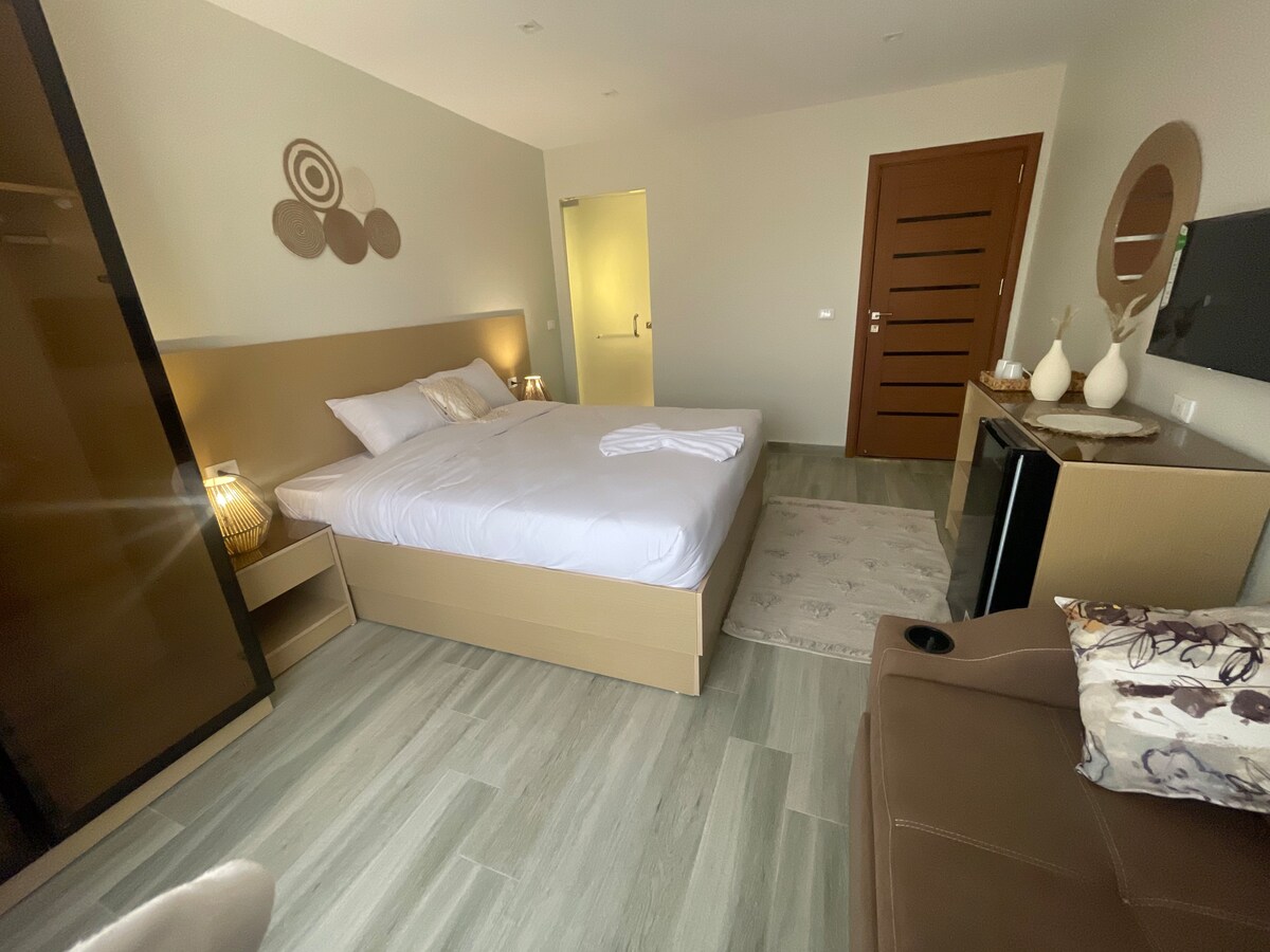 Modern room with modern decor the room conatin private bathroom, 1 queen bed, smart tv, Netflix, air condition, Wi-Fi, mini bar, hair drier, electric kettle