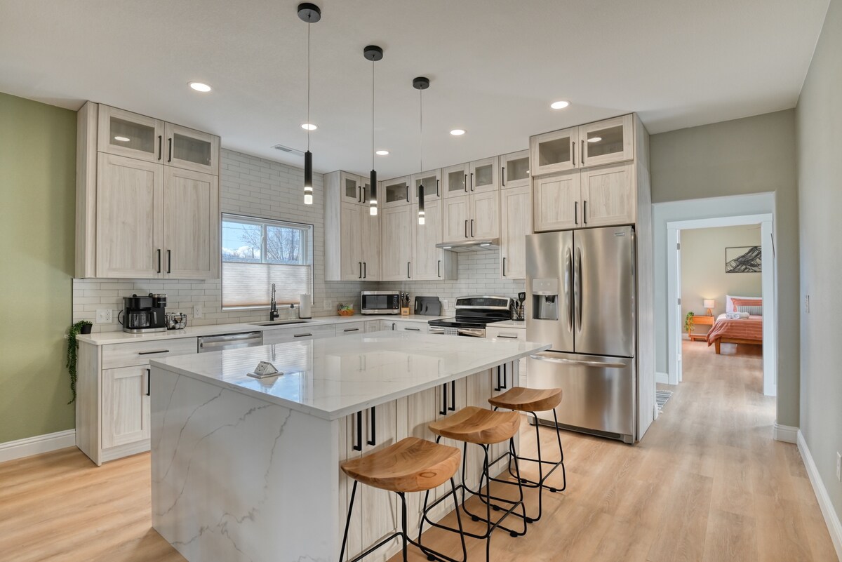 ☞ 全新建築,現代裝潢! ☞ 寵物友善,有圍欄的庭院+派克峰景觀 ☞ 步行、騎自行車或開車1英里到市中心 ☞ 70 吋智慧電視 ☞ 主臥室配有豪華套房和步入式衣櫃 ☞ 室內瓦斯壁爐 高☞ 速 Wi-Fi ☞ 18分鐘即可抵達眾神花園、C/S機場、Manitou Airbnb執照:A-STRP-24-0321