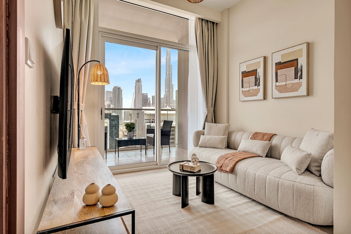 Experience Downtown living at its finest: a bright living area, and a balcony that frames the Burj Khalifa and Fountain. The apartment is on a high floor and comes fully equipped for comfortable short-term stays — perfect for couples, families or business travelers who want to be in the heart of the city. The space Prime location: 3-minute walk to Burj Khalifa, Dubai Mall and Dubai Fountain; 2-minute walk to Carrefour and African + Eastern.