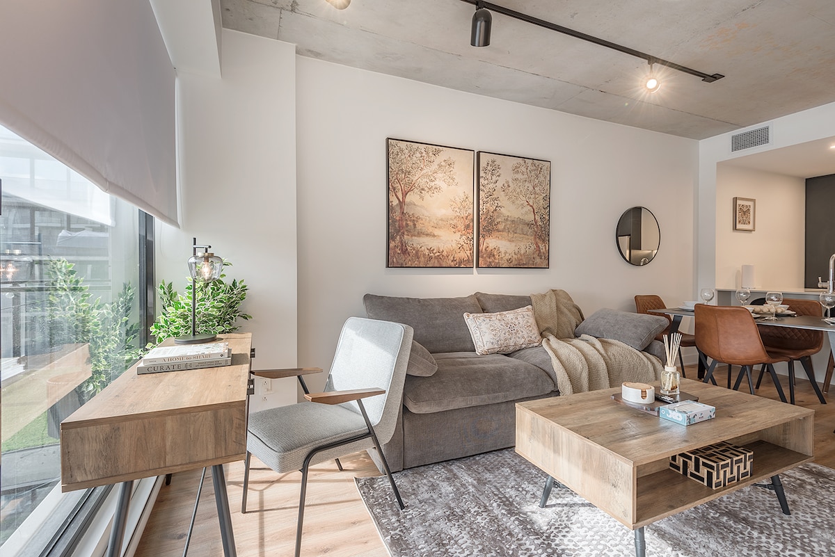 Experience comfort and sophistication in this beautifully designed one-bedroom suite. With a queen bed, sofa bed, and a dedicated workstation, the space effortlessly blends relaxation and productivity. Premium amenities including indoor parking, in-unit laundry, and a fully equipped kitchen ensure a seamless and elevated Montréal stay.