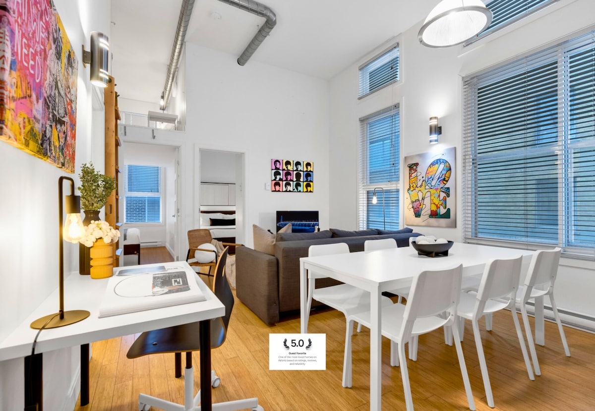 Stay in a spacious modern 2-bedroom suite with mezzanine loft in Plateau Mont-Royal, minutes from Downtown Montréal. Open-concept layout with high ceilings, curated décor, and a comfortable lounge—ideal for families, groups, and extended stays. Guest Favorite • 5,000+ reviews • 10+ years Superhost.