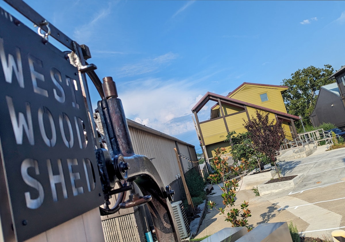 WestWood Shed • A Vacation & Work Stay: Suite #3 is an Accessible Home Office. Four Private Apartment Suites—each with a front living room and open kitchen for entertaining your visitors, with a keyed separate bedroom and laundry—all within your private Suite. Suite #3 is a favorite—an ideal place to work, recover, and vacation. Off 8th & Walk to GEODIS. The renowned City of Berry Hill (inside Nashville) has over 60 music agencies & recording studios, and an efficient police department.