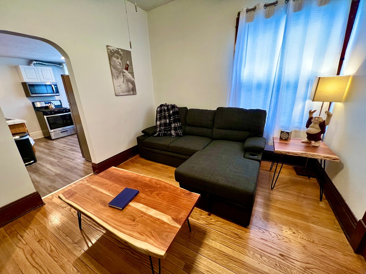 Newly renovated second floor of a carriage house located on a historic property in the popular Blackstone District. Shares an acre of land with the main house, built in 1892 and occupied by the owners. Although situated in the middle of the city, the unit feels secluded from its urban environment and looks out onto a garden surrounded by trees, shrubs and flowers and is in walking distance to many restaurants and bars in both the Blackstone District and Midtown Crossing.