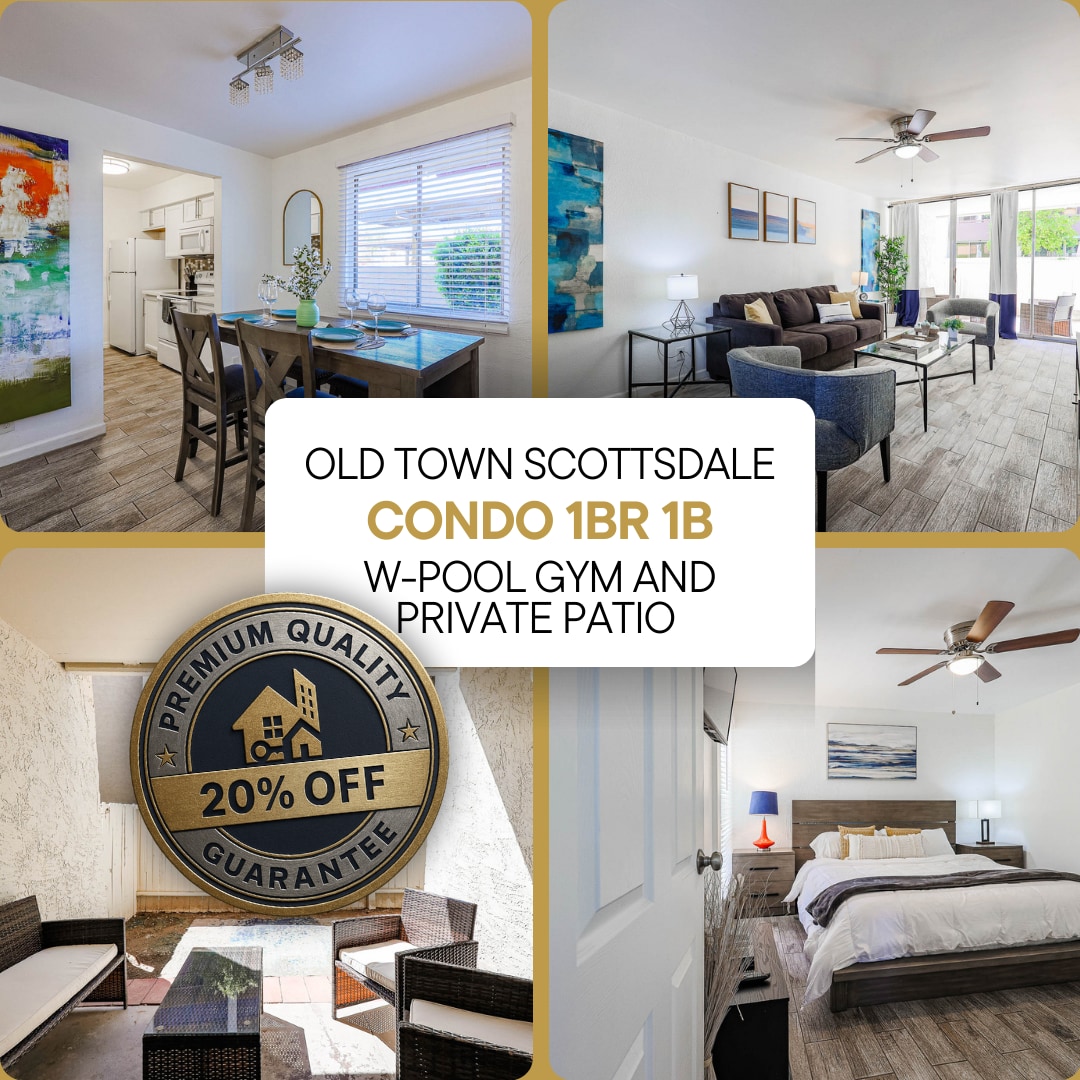 Welcome to your relaxing Scottsdale retreat. This resort-style condo features a heated pool, spa, fitness center, and private balcony to enjoy the Arizona sunshine. Located in South Scottsdale just minutes from Old Town, you’ll be close to restaurants, nightlife, golf courses, and seasonal events. Perfect for weekend trips, golf getaways, or festival visitors looking for a comfortable stay near everything Scottsdale has to offer. TPT Lic. #21555785