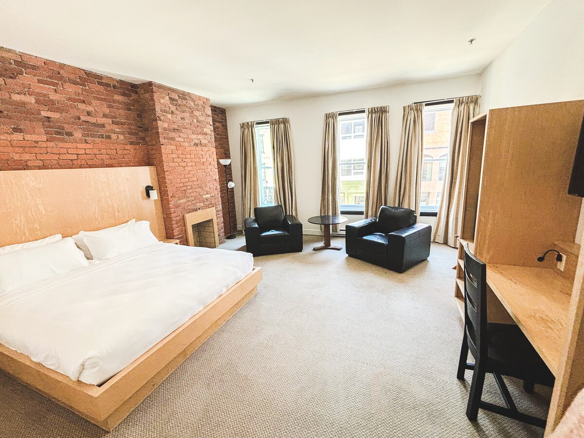 Suites at The Franklin are proudly situated within one of St. John's finest heritage buildings and the former home of Parker & Monroe Ltd, an iconic shoe store that served St. John's as early as 1880. Guests enjoy being located on Water Street, within the Financial District and at the very heart of the best shopping, restaurants and entertainment Downtown St. John's has to offer. Suites are self contained, spacious and comfortable, have high ceilings and tall windows. WiFi is complimentary.
