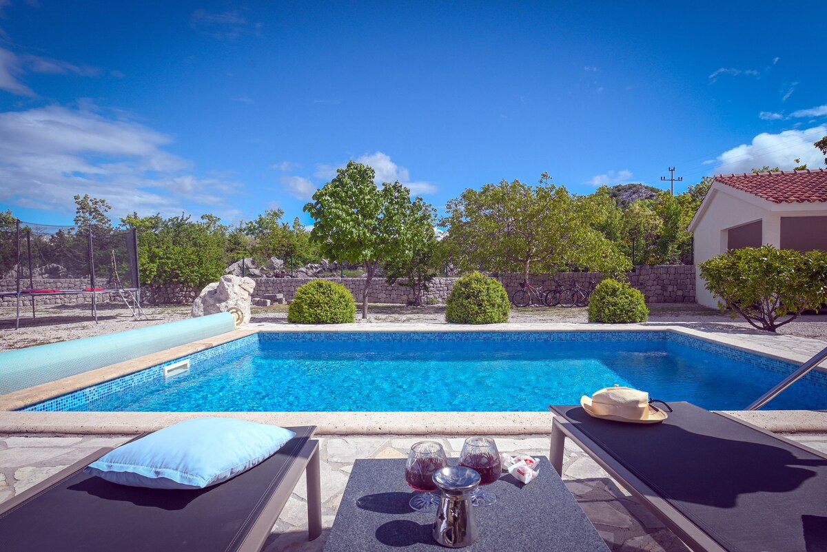 這棟迷人舒適的別墅,現代設計與鄉村裝飾相遇。 位於Duge Njive的一個安靜區域,靠近Makarska。 它為放鬆、無憂無慮和舒適的假期提供了完美的背景。 非常適合度假或家庭度假。 別墅由三間臥室和兩間浴室組成。 廚房配備了所有電器,可欣賞美麗的山景。 Rustica別墅有一個大泳池, 7 * 3.5米,提供完全的隱私。