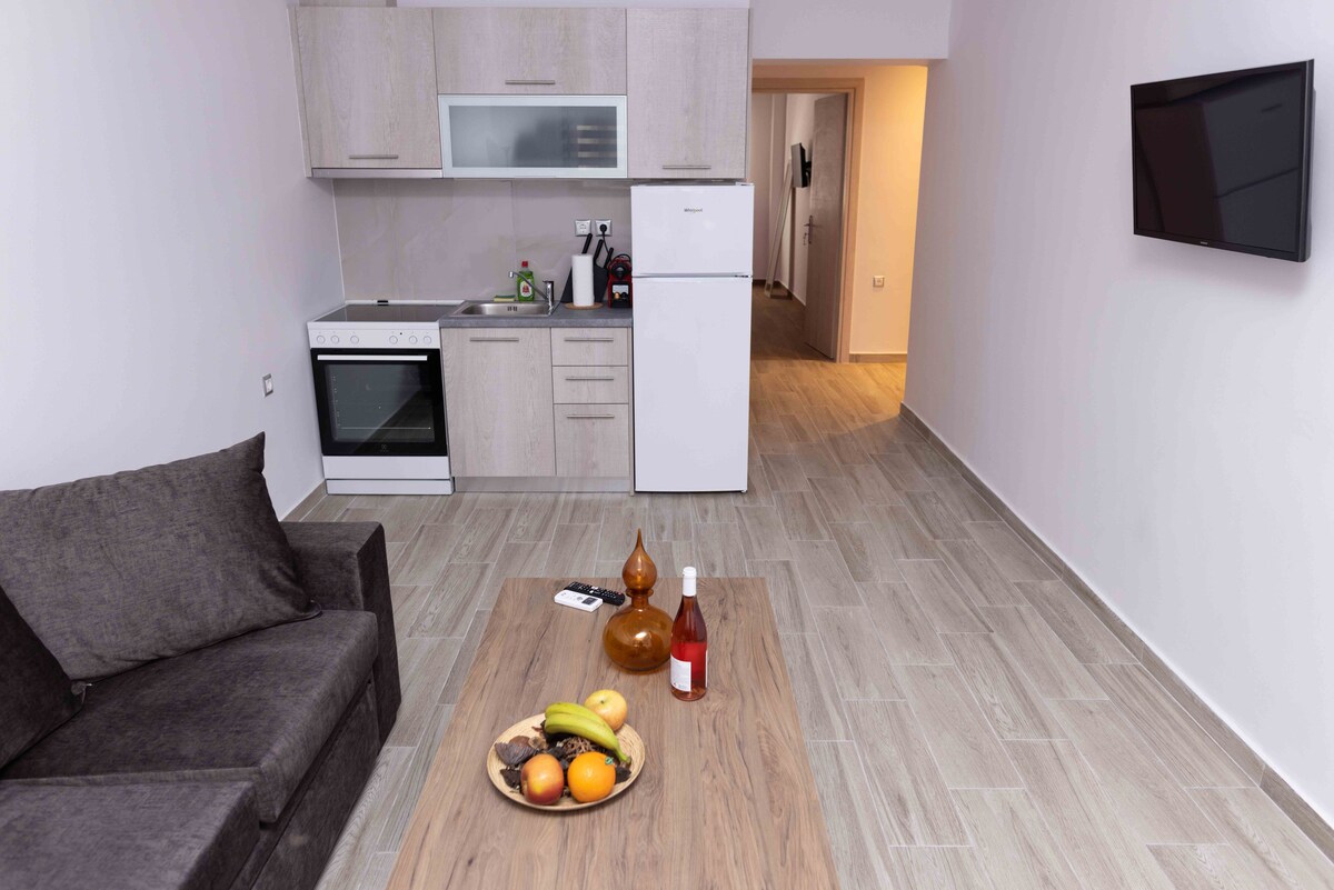 這間全新裝潢的舒適公寓位於Drapetsona街區,步行10分鐘即可抵達港口。 公寓明亮且設備齊全,讓您住得舒適和放鬆。 雙人床將讓您感到舒適,為您充電,乾淨舒適的浴室將讓您一整天都能充滿活力。 咖啡店、超市、銀行、餐廳和巴士站距離您的住宿僅1分鐘路程。 我們的目標是為房客提供最佳的體驗。