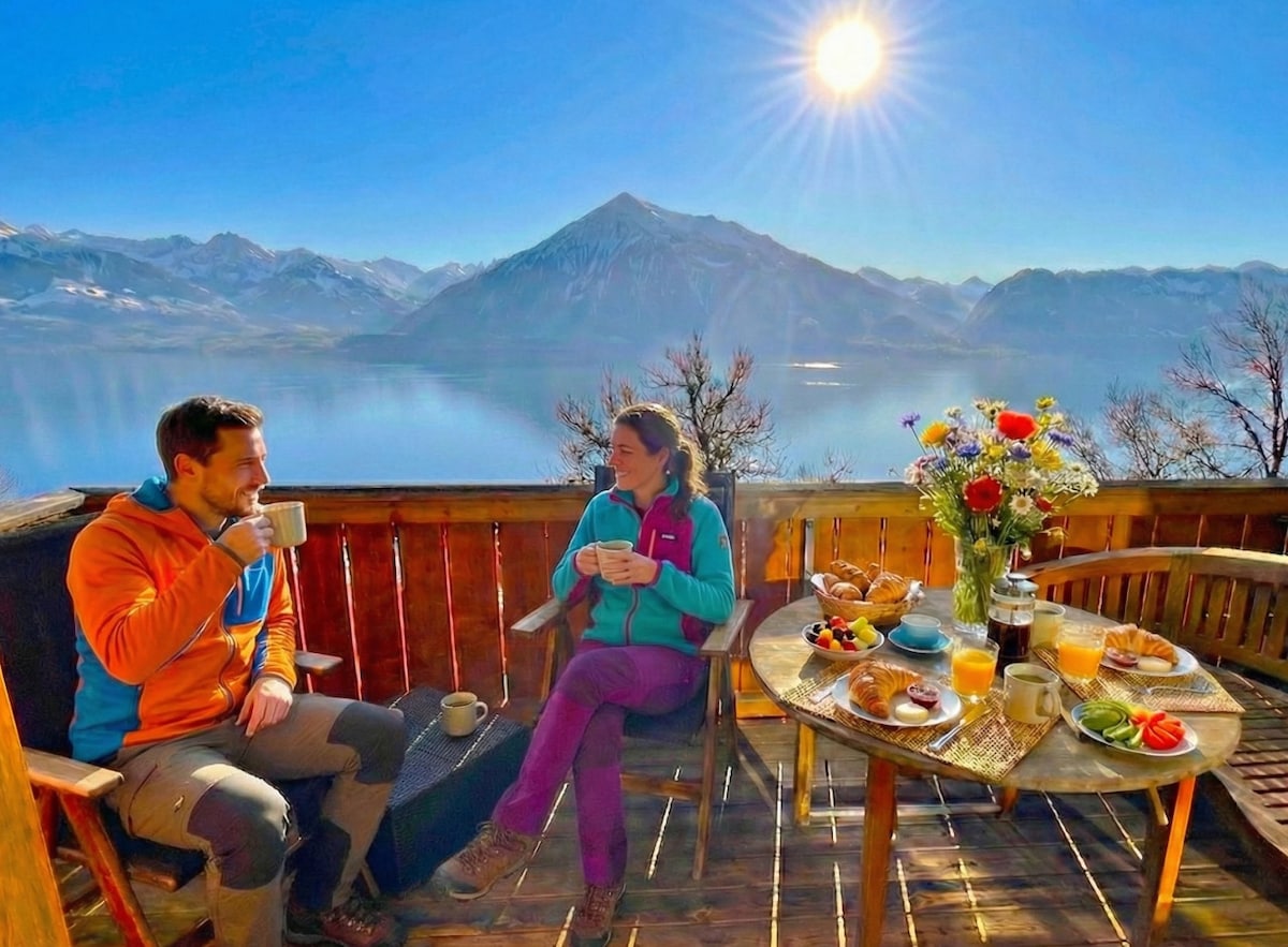 🛌 Luxurious king bed 💻 Fast Wi‑Fi & workspace 🌄 Breathtaking mountain & lake views + private terrace 🎨 Cozy, thoughtfully designed interiors 🍳 Fully equipped kitchen 🚗 Reserved parking 📺 Smart TV & entertainment 🧳 Free luggage storage ⏲️ Superhost with fast, friendly replies 🚗 Easy access to Brienz, Interlaken, Thun, Lauterbrunnen, castles, hikes & the lake! ❗️Please read full description to set realistic expectations.
