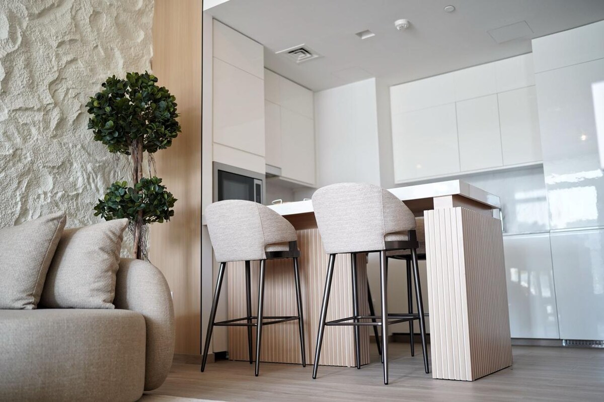 走進屬於你的迪拜 Creek Beach Harbour 休閒度假! 配有按摩椅、智慧電視、Wi-Fi、嬰兒床和所有必需品,讓您舒適放鬆。 您可以在多個泳池中暢遊,在健身房保持活力,或在沙灘泻湖中享受時光。 裝飾精美,讓您享受溫馨難忘的住宿體驗,是放鬆身心、創造難忘時刻的完美場所!