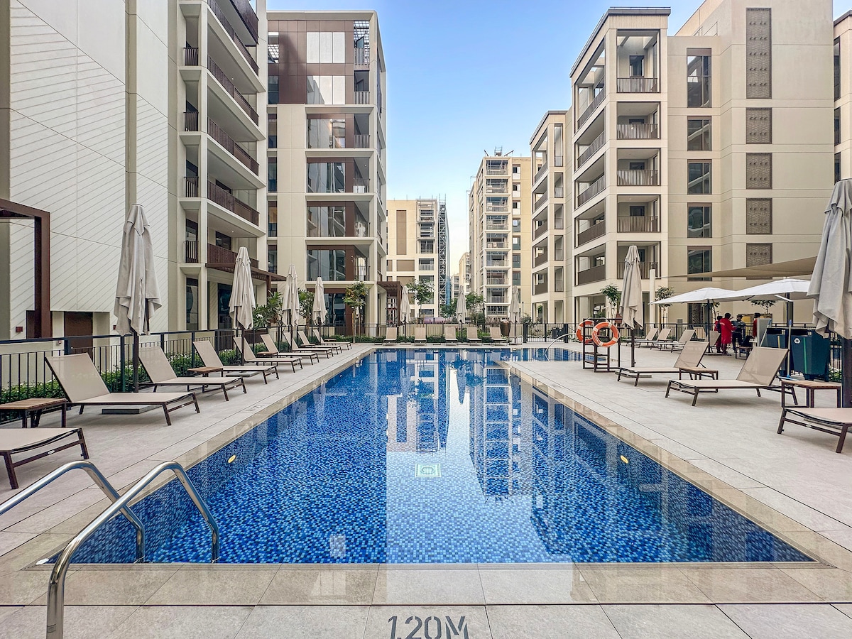 時尚的杜拜住宿– 1BR、泻湖、泳池、健身房