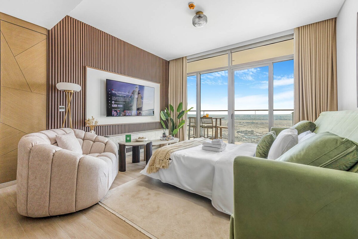 位於杜拜市中心的時尚單間公寓,從私人陽臺上可欣賞迷人的天際線景觀。 步行 7 分鐘即可抵達杜拜購物中心和標誌性的哈利法塔,距離世界一流的購物、餐飲和娛樂場所僅幾步之遙。 公寓設備齊全,配有豪華酒店風格的床單、高速WiFi、智慧電視和全套小廚房,適合商務或休閒住宿。 房客還可以免費使用大樓內的健身房和戶外無邊際泳池。