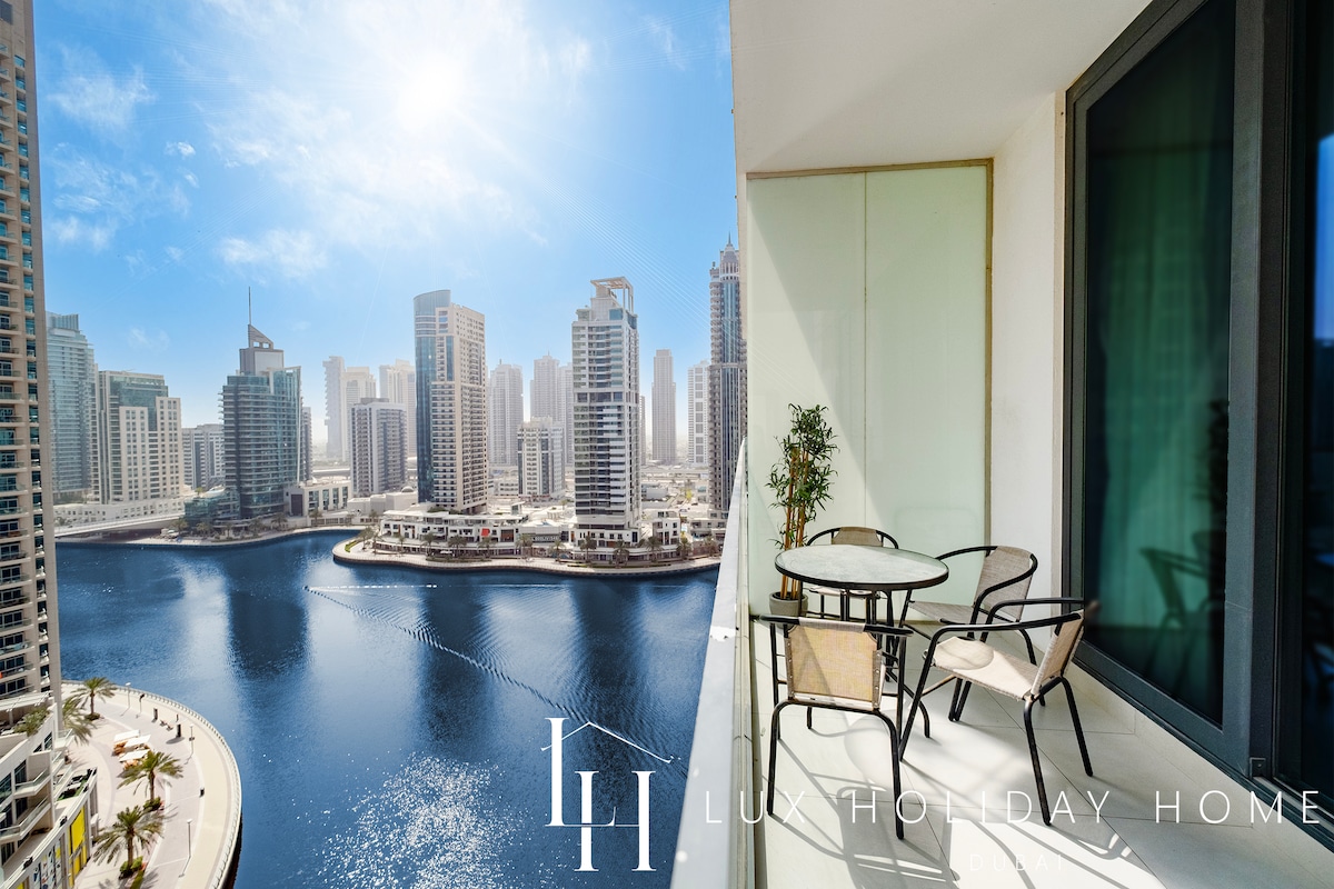 現代2臥室杜拜馬里納公寓|天際線和運河景觀