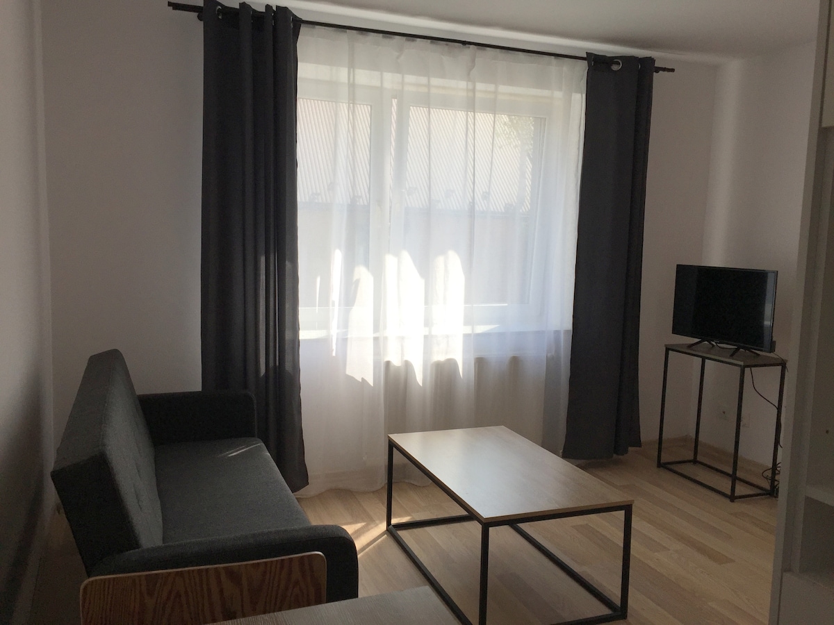 現代化、舒適的家具和設備齊全的46公尺公寓,位於有警衛、安靜的莊園內,地下車庫有自己的停車位。 一間明亮的臥室,配有一張雙人牀,廚房配備洗碗機、烤箱、微波爐、烤麵包機和咖啡機。 在寬敞的花園喝醉了新鮮咖啡,這只是讓您的住宿愉快的許多東西之一。 高速Wi-Fi、有線電視和家庭劇院可讓您在放鬆的浴缸後享受娛樂。